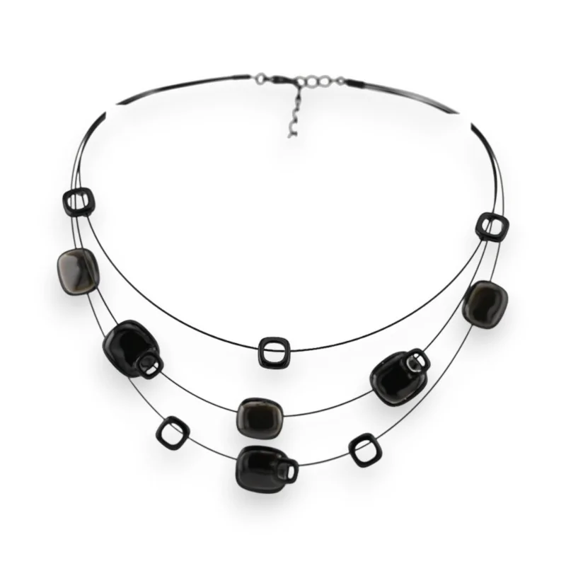 Ikita è rinomata per la qualità dei suoi gioielli fantasia, e questa collana non fa eccezione. Le pastiglie in metallo sono accuratamente lavorate per offrire una finitura impeccabile e una durata ottimale. Il contrasto tra il nero profondo e il grigio scuro crea un sottile gioco di luce che attira l'occhio e valorizza il décolleté. La catena è robusta e progettata per resistere all'usura quotidiana, garantendo così la longevità del vostro accessorio preferito.