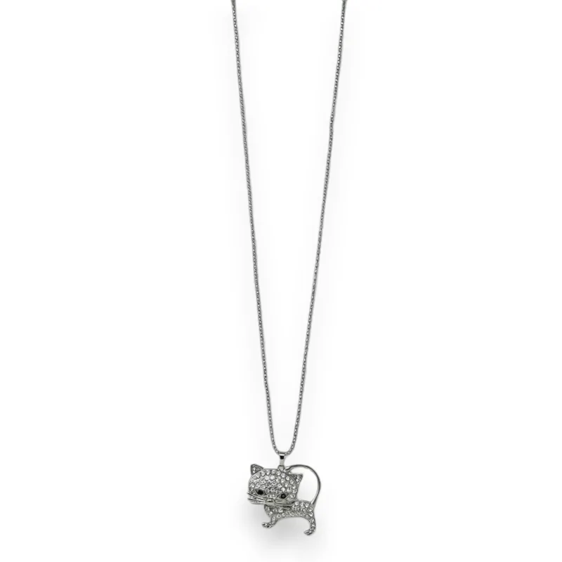 Scopri un collier finto che cattura la malizia e la dolcezza di un gattino, questa creatura così tenera che seduce i cuori di molti amanti dei gioielli. Il ciondolo mette in mostra un adorabile gattino, delicatamente modellato con strass argentati che brillano e scintillano ad ogni movimento, riflettendo la luce in modo incantevole. La dimensione precisa del medaglione è di 3,8 cm, una dimensione ideale per mettere in risalto i dettagli sottili del gattino mentre rimane sottile ed elegante. Quando questo pendente è attaccato alla sua delicata catena, la lunghezza totale del collier è di 38 cm. Per coloro che cercano una vestibilità perfetta o una modificabilità in base all'abito scelto, una catena regolabile è sapientemente incorporata, consentendo di regolare la lunghezza a piacimento.