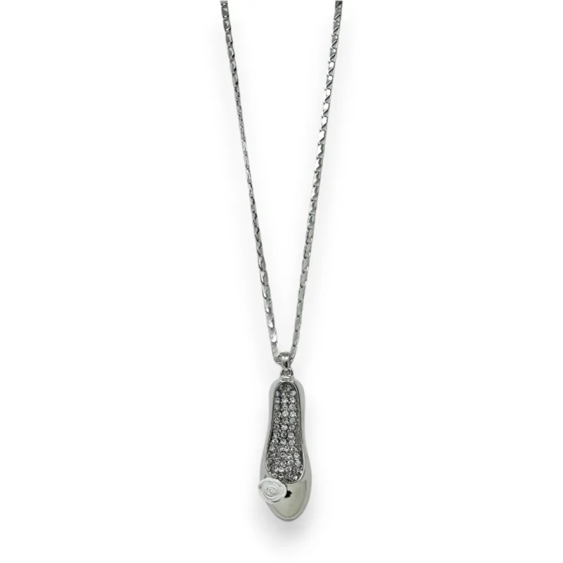 Questa magnifica collana pendente a cascata del marchio Ikita unisce eleganza e originalità. Il suo design unico è composto da un pendente in metallo argentato formato da molteplici pezzi ovali disposti a cascata, creando un sofisticato effetto di movimento. La collana è montata su un cavo grigio di 21 cm di altezza, con una pratica prolunga di 5 cm per una regolazione perfetta. Un gioiello contemporaneo e raffinato che sublimerai tuoi outfit con stile.