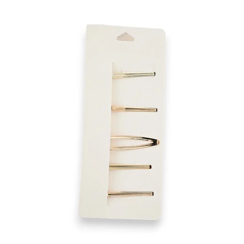 Questo set di 5 fermagli per capelli fantasia offre una selezione varia di eleganti accessori per capelli per impreziosire le tue acconciature quotidiane. Ogni fermaglio presenta un design unico e raffinato, permettendo di creare facilmente diversi stili a seconda dei tuoi desideri e dei tuoi outfit. Con i loro delicati ornamenti come fiocchi, perle, strass o motivi floreali, questi fermagli aggiungono un tocco femminile e sofisticato a qualsiasi acconciatura. La loro dimensione media li rende versatili, perfetti per trattenere una ciocca di lato, decorare uno chignon o aggiungere una nota brillante a una coda di cavallo.