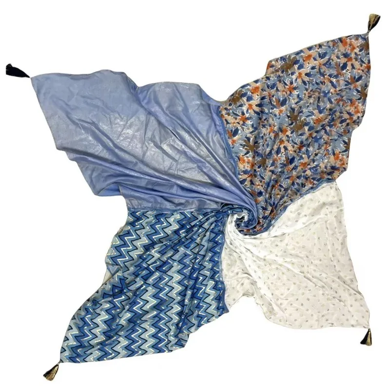 Il nostro foulard patchwork presenta una fusione accattivante di motivi floreali e disegni a zigzag, creando un accessorio visivamente accattivante che si distingue in qualsiasi guardaroba. Realizzato con una confortevole miscela di 75% viscosa e 25% cotone, non solo garantisce un confortevole utilizzo, ma anche una durabilità. Misurando 140x140 cm, questo grande foulard può essere indossato in diversi modi, sia annodato elegantemente attorno al collo, utilizzato come scialle nelle serate più fresche, o anche come elemento decorativo su una borsa. È l'accessorio perfetto per coloro che cercano sia stile che versatilità.