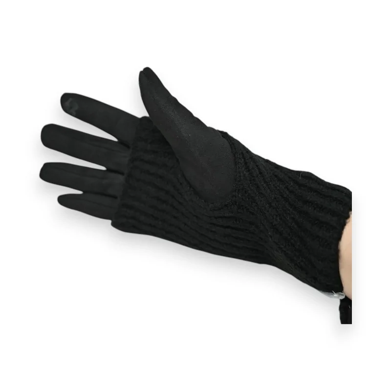 La parte guanto di questo modello 2-in-1 è realizzata in scamosciato nero di eccezionale morbidezza. La fodera in velluto offre calore e comfort, avvolgendo piacevolmente le mani quando fa freddo. La delicata texture dello scamosciato regala una sensazione piacevole al tatto, mentre il suo elegante colore nero si abbina a tutti i vostri outfit invernali.