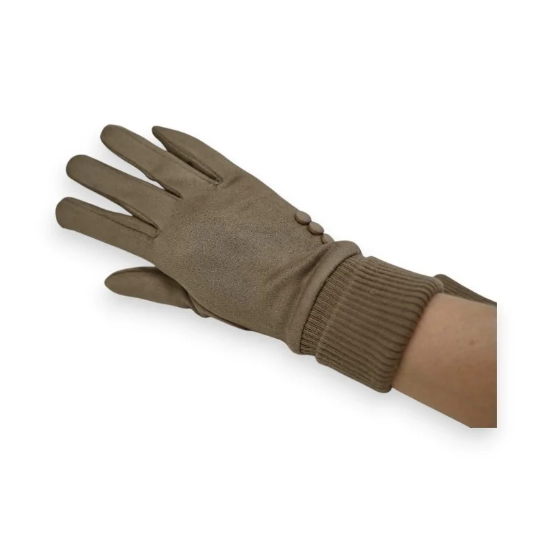 Questi guanti color talpa combinano perfettamente stile e praticità. Realizzati in bi-materiale, uniscono la morbidezza della pelle scamosciata sulla parte superiore all'elasticità del poliestere sul polso per una vestibilità ottimale. L'aggiunta di 3 piccoli bottoni decorativi sul lato del guanto conferisce un tocco di ulteriore eleganza. Il loro colore talpa neutro e chic si abbina facilmente a molti outfit.