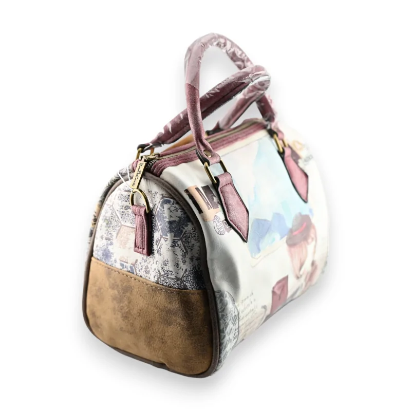 Ridefinisci il tuo stile con questa innovativa borsa a mano, il cui design trae ispirazione dalle borse da bowling, integrando un affascinante motivo di una bambina che viaggia in treno con il suo fedele compagno animale. Il design utilizza una gamma di colori sobri ed eleganti, che si abbinano perfettamente ad ogni outfit, aggiungendo un tocco di raffinatezza discreta al tuo guardaroba. L'interno ben organizzato include una spaziosa tasca centrale per i tuoi oggetti essenziali quotidiani, così come una tasca interna con zip per gli oggetti preziosi più piccoli, garantendo allo stesso tempo accessibilità e sicurezza. La flessibilità è al centro del design di questa borsa, grazie alla sua tracolla rimovibile che ti permette di variare lo stile di portabilità a seconda delle tue preferenze, che sia a mano per un look elegante o sulla spalla per un aspetto più casual. Con le sue dimensioni di 20x21 cm, questa borsa a mano combina abilmente estetica contemporanea e praticità, rendendola la scelta preferita per coloro che cercano di unire moda e funzionalità.