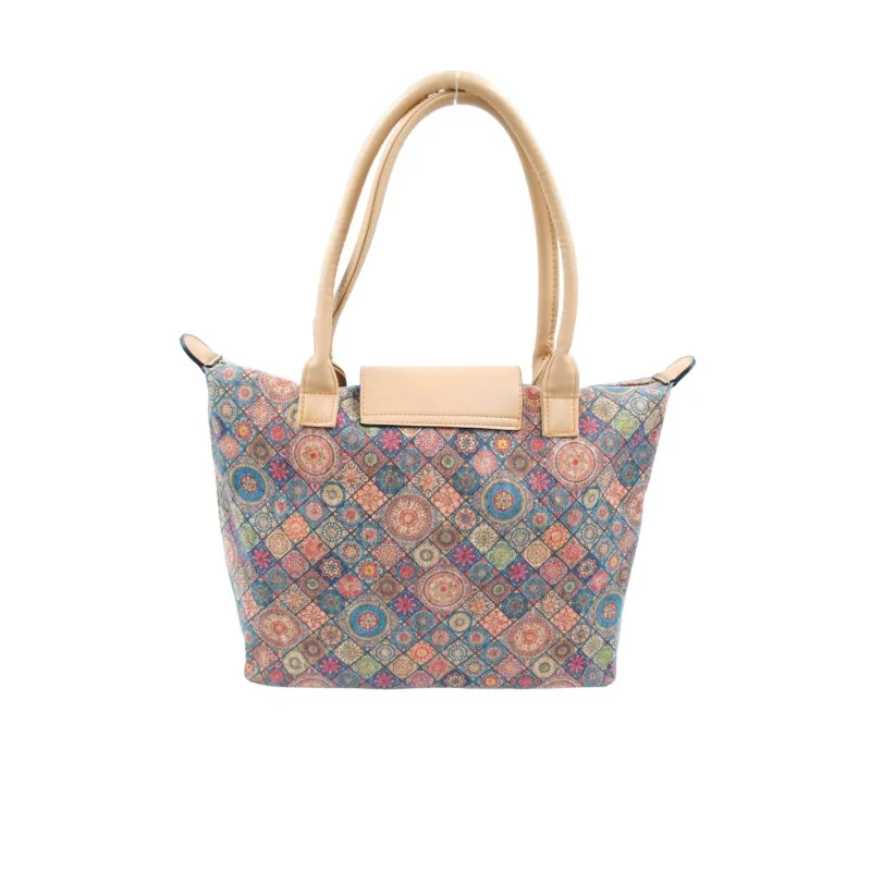 Questo borsone di sughero è rifinito con una linguetta sintetica, che gli conferisce un aspetto allo stesso tempo elegante e funzionale. La chiusura del borsone è assicurata da un bottone a pressione, garantendo così la sicurezza delle tue cose all'interno. Il design di questo borsone si distingue non solo per la sua forma unica, ma anche per il suo magnifico motivo multicolore. Questo consiste in molte rose geometriche che apportano un tocco di originalità e modernità all'insieme. Il borsone misura 28 cm di lunghezza, 12 cm di larghezza e 21 cm di altezza, offrendo uno spazio di stoccaggio sufficiente per contenere tutti i tuoi oggetti essenziali. La composizione del borsone è un mix di 30% di materiale sintetico e 70% di sughero, rendendolo un accessorio sia ecologico che durevole. Il sughero è un materiale naturale e rinnovabile, contribuendo così a ridurre l'impatto ambientale di questo borsone.