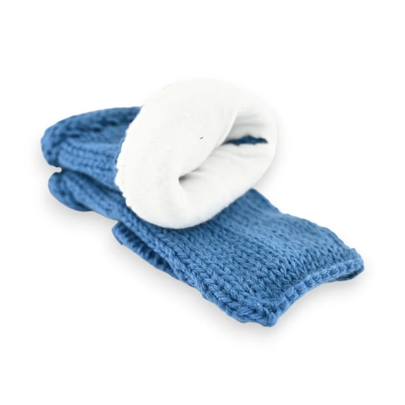 Questi guanti senza dita lavorati a maglia in un profondo blu petrolio combinano calore e stile per l'inverno. Realizzati in maglia spessa e foderati per un maggiore comfort, hanno un'apertura per il pollice e sono decorati con un grazioso nodo in rilievo sul davanti. La taglia unica si adatta a tutte le morfologie. Un accessorio di moda pratico ed elegante per affrontare le temperature invernali con stile.