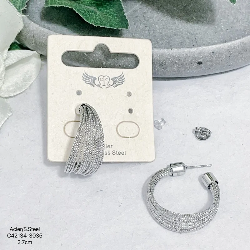 La finitura argentata di alta qualità e la struttura a più file conferiscono un tocco di raffinatezza a questi versatili orecchini. L'acciaio inossidabile garantisce un'eccellente durabilità e una resistenza ottimale all'usura quotidiana.
