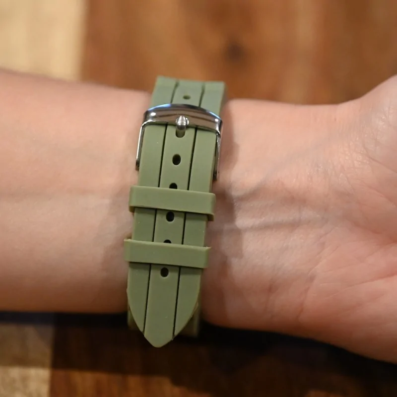 La montre "Ernest" in silicone kaki è la quintessenza dello stile contemporaneo abbinato a una funzionalità senza compromessi. La scelta del kaki, un colore intramontabile e versatile, la rende l'accessorio perfetto in ogni stagione, ma è particolarmente in linea con i colori di tendenza attuali. Questo cinturino in silicone kaki, morbido al tatto e resistente all'uso, abbraccia un quadrante di un grigio chiaro sottile che evoca un'eleganza discreta. Ma l'eleganza di questo orologio non finisce qui. Il quadrante è delicatamente ornato di strass luccicanti che aggiungono un tocco di sofisticazione. Questi piccoli gioielli catturano la luce e scintillano ad ogni movimento del polso, offrendo così un contrasto sorprendente con la sobrietà del kaki e del grigio. La montre "Ernest" raggiunge il perfetto equilibrio tra chic e casual, rendendo omaggio a coloro che apprezzano il lusso discreto pur rimanendo ancorati alla modernità.