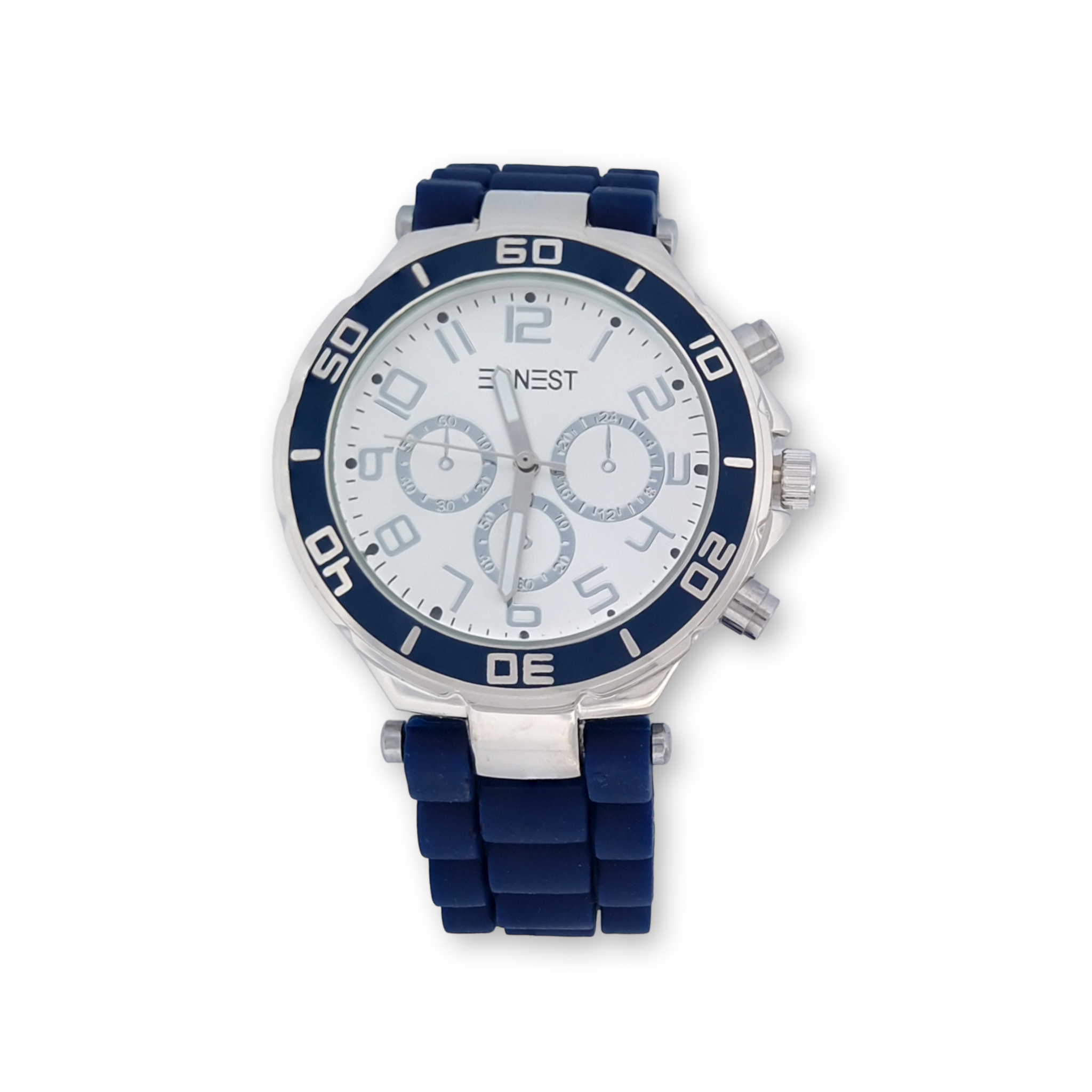 Il cinturino in silicone di questo orologio Ernest offre un comfort ottimale per un uso quotidiano. Flessibile e resistente all'acqua, questo materiale si adatta perfettamente al polso e mantiene le sue qualità estetiche nel tempo. I collegamenti articolati del cinturino permettono una regolazione precisa per adattarsi a tutte le dimensioni del polso. La sua texture morbida al tatto evita irritazioni anche in caso di uso prolungato, rendendolo l'accessorio ideale per accompagnare le vostre attività quotidiane.