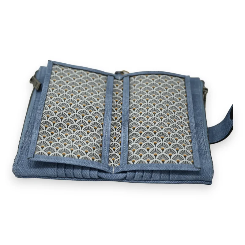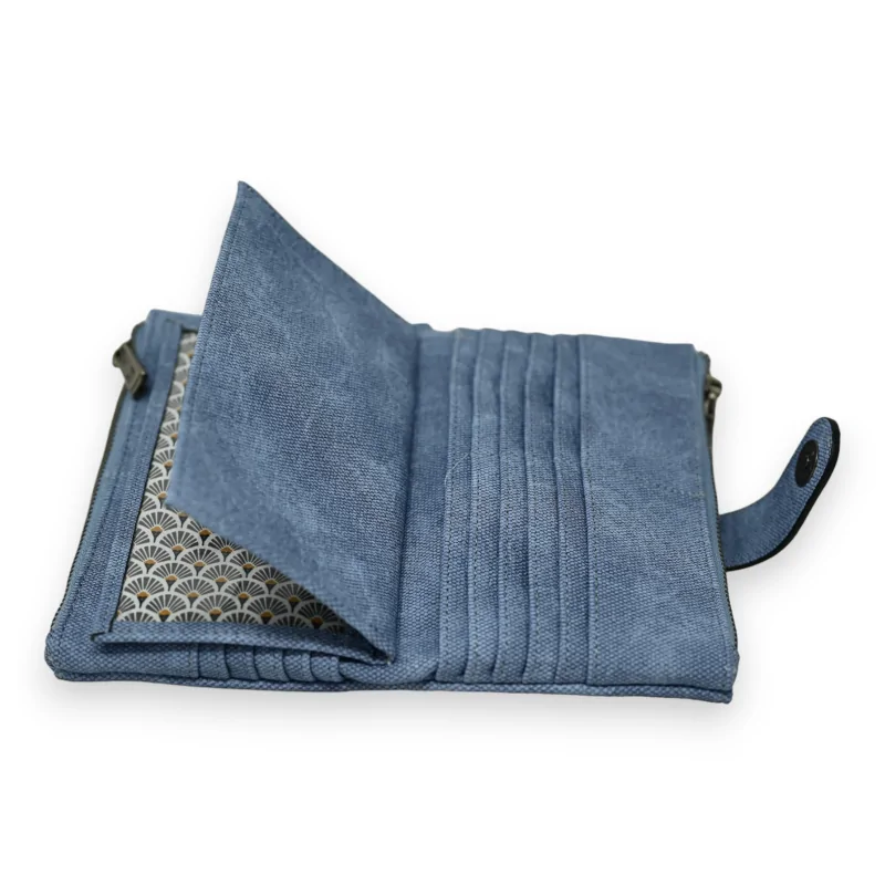 Adottate uno stile chic con questo portafoglio compagno in jeans blu sbiadito distintivo. Il suo materiale sintetico, sia eccezionale che morbido al tatto, definisce un nuovo standard di cura e qualità. L'apertura magnetica consente un accesso rapido a un interno astutamente organizzato, dotato di tasche con zip per le monete e arricchito da numerosi scomparti di stoccaggio, incluso uno spazio per l'assegno. Le rifiniture accurate, migliorate da un rivestimento in tessuto vintage, aggiungono una dimensione di classe e sofisticatezza. Con dimensioni di 19x12 cm, questo portafoglio si rivela l'elemento indispensabile per un'organizzazione elegante della vostra borsa.