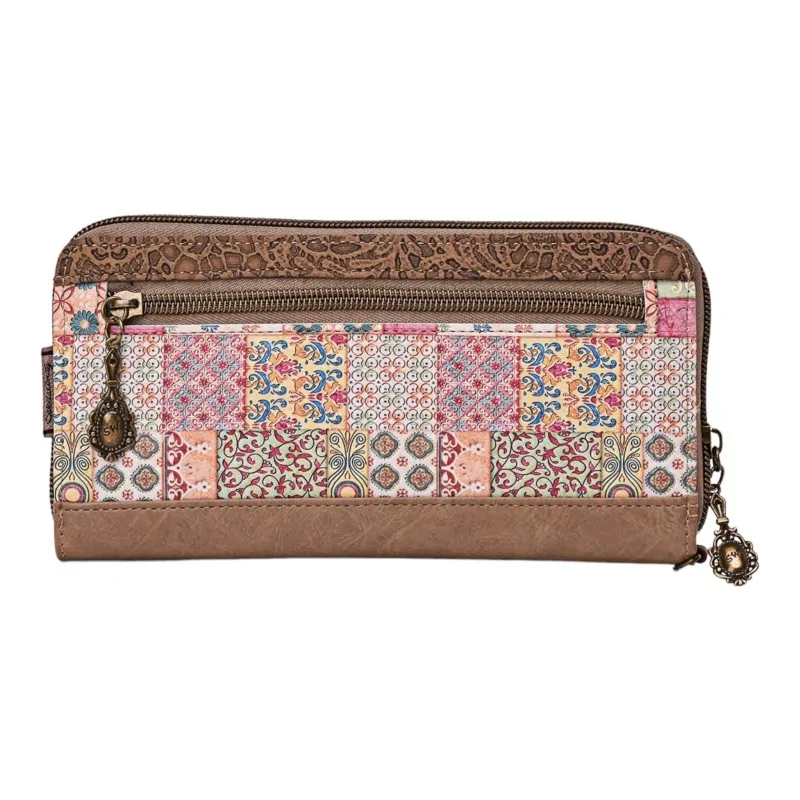 Questo modello coniuga praticità ed estetica grazie alle sue due parti distinte: una con chiusura a pressione per le carte, l'altra con zip per le monete e le banconote. La fodera stampata e le finiture curate testimoniano una fabbricazione di qualità, mentre le sue dimensioni di 19x11x2,5cm lo rendono un accessorio perfettamente adatto all'uso quotidiano.