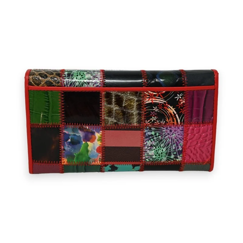 Presentiamo il nostro ultimo modello di portafoglio in pelle patchwork: un caleidoscopio di tonalità varie brillantemente accentuate da un effetto vernice e da rifiniture rosse. Questo portafoglio è più che un semplice accessorio di moda, è una soluzione di organizzazione ottimale. È equipaggiato con scomparti appositamente progettati per contenere varie carte, un porta assegni, e una bustina con zip per le monete, rendendolo indispensabile per coloro che amano avere tutto a portata di mano. Le sue dimensioni pratiche di 20 x 11 cm vi permettono di portarlo ovunque senza ingombro.