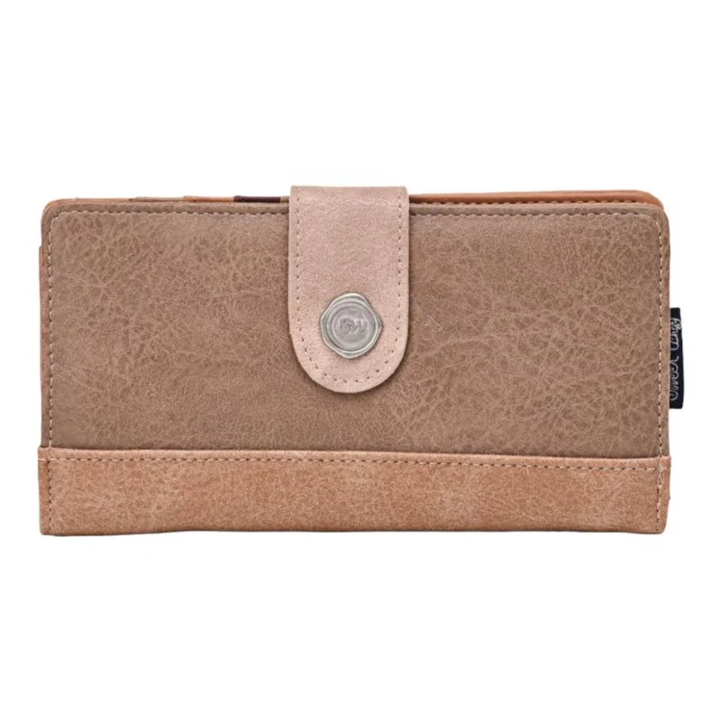 Il portafoglio compagno Mandoline in sintetico color talpa unisce eleganza e praticità. Dotato di molteplici scomparti, tra cui 2 tasche con zip e uno spazio per l'assegno, si adatta a tutte le tue esigenze. Il suo formato compatto di 19x11cm e la chiusura magnetica lo rendono l'accessorio ideale per l'uso quotidiano. Con le sue finiture curate e il suo stile vintage, questo portafoglio versatile diventerà presto indispensabile.