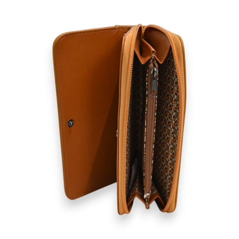 Dal lato pratico, dispone di una parte con chiusura a pressione dedicata alla sistemazione delle carte, e di una seconda parte con zip per le monete e le banconote. La sua fodera stampata e le sue finiture curate ne fanno un accessorio tanto estetico quanto funzionale.