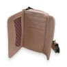 Questo portafoglio Mélanie Paris si distingue per il suo design contemporaneo che combina sobrietà e raffinatezza. Le dimensioni di 14 x 9 x 2,5 cm lo rendono un accessorio perfettamente adatto alle borse attuali. La combinazione del rosa antico con le finiture dorate crea un contrasto elegante, impreziosito da una cinghia decorativa color cammello che aggiunge un tocco di carattere. La texture del materiale sintetico di alta qualità offre un aspetto premium garantendo al contempo una durata ottimale.
