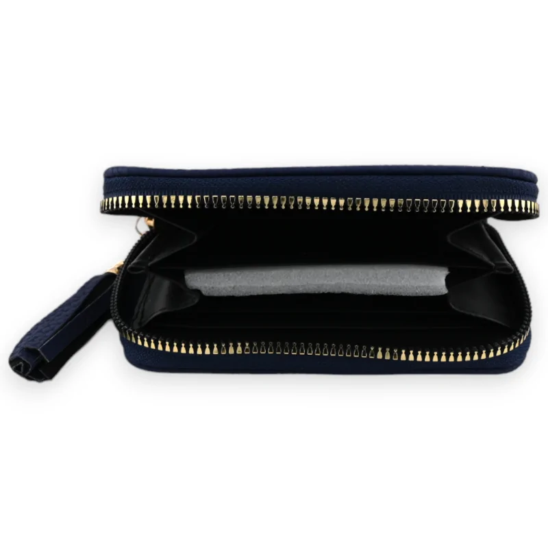 L'interno sapientemente organizzato include un portamonete centrale con zip, scomparti per carte e vani multifunzione. La fodera stampata colorata aggiunge un tocco di fantasia, mentre il sistema a fisarmonica consente una conservazione ottimale nonostante le dimensioni compatte di 14 x 9 x 2,5 cm.