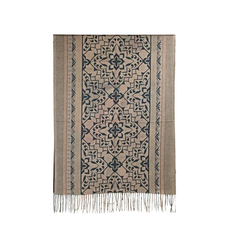 Aggiungi un tocco di eleganza urbana al tuo outfit con la nostra lussuosa sciarpa camouflage. Questa grande sciarpa di 90x180cm sfoggia un sofisticato motivo mimetico in tonalità di nero, talpa, grigio e marrone, impreziosito da delicati dettagli dorati. Realizzata in morbido e leggero poliestere 100%, unisce comfort e stile per un look di tendenza in ogni stagione.