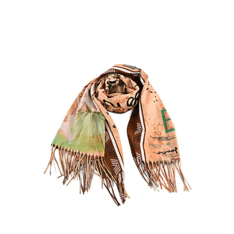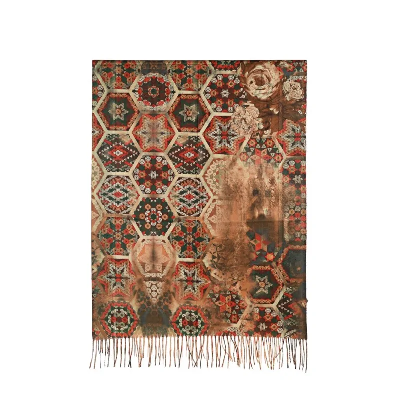 Questa elegante sciarpa presenta un motivo mimetico in tonalità di verde, arricchito da sottili dettagli dorati. Realizzata in poliestere di alta qualità, offre un formato generoso di 90x180cm per una moltitudine di possibilità di stile. Il suo design unico combina lo spirito militare con un tocco di sofisticatezza, rendendola l'accessorio perfetto per aggiungere una nota di originalità ai vostri outfit.