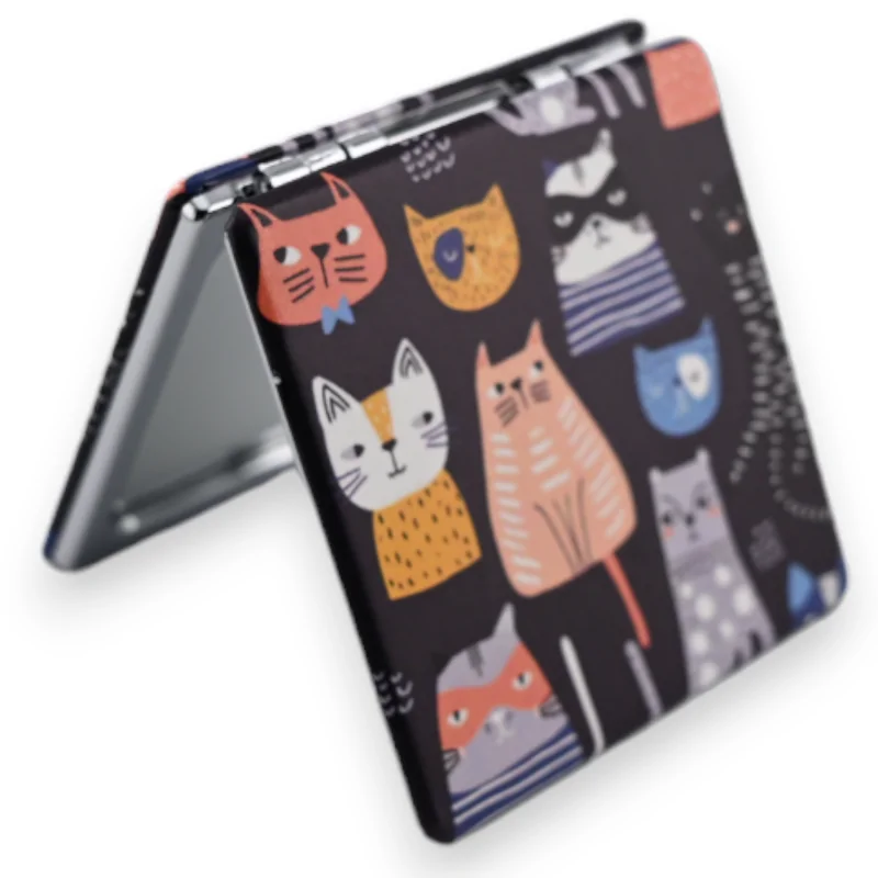 Questo specchio da tasca, compatto, con un formato di 7x7 cm, è l'accessorio ideale per chi è sempre in movimento. Progettato per entrare facilmente nella borsa, nella trousse da trucco o nella pochette, ti accompagnerà fedelmente durante i tuoi viaggi quotidiani o più lontani. Ma ciò che rende veramente unico questo specchio è la sua stampa dedicata a tutti gli appassionati di felini. Se sei un fan incondizionato dei gatti, rimarrai istantaneamente conquistato! La stampa, lontana da una semplice rappresentazione, gioca sull'umorismo, offrendo una interpretazione spensierata e divertente dei nostri compagni a quattro zampe. Ogni sguardo in questo specchio è l'occasione per una piccola boccata di gioia, per un sorriso spontaneo grazie all'umorismo felino che ritrae.