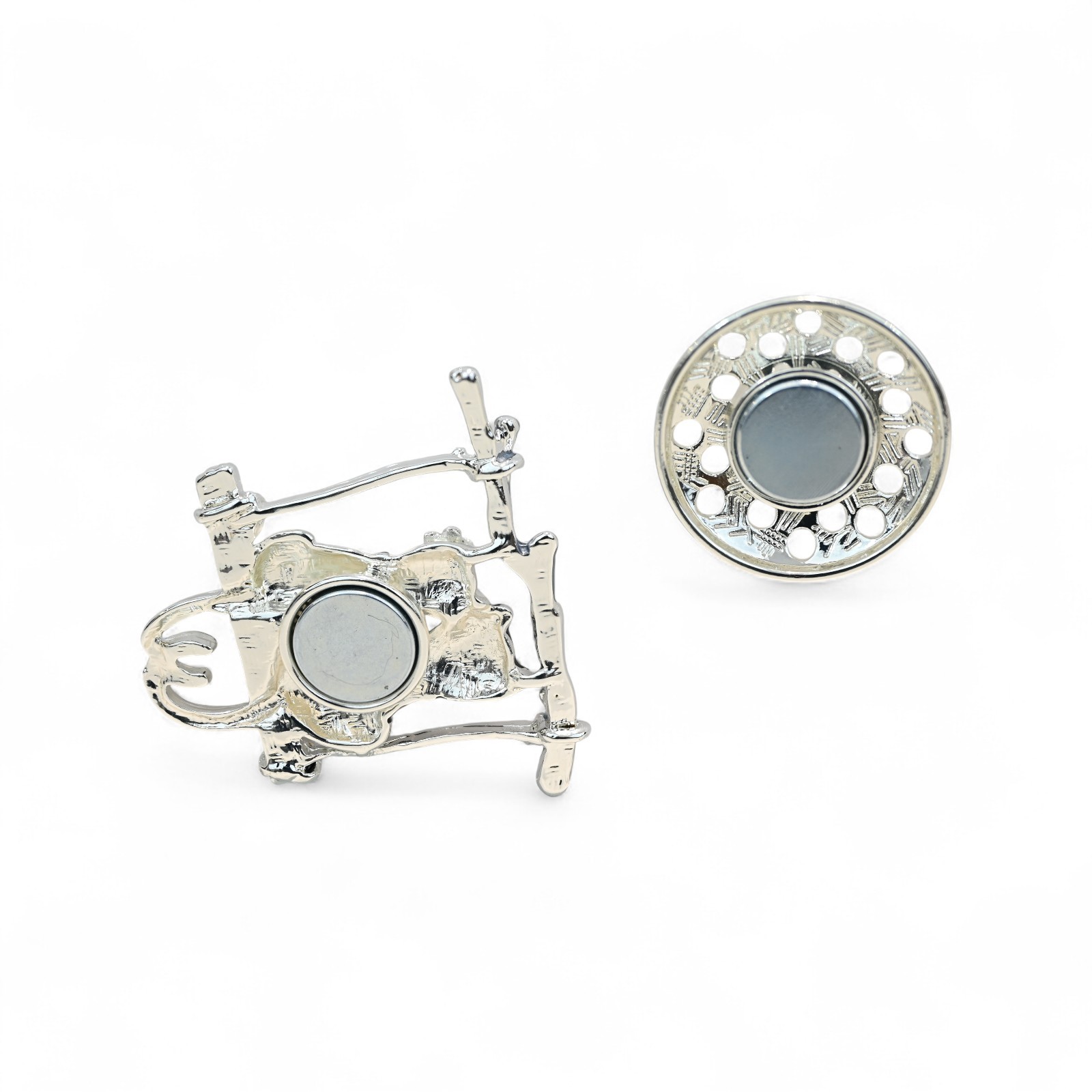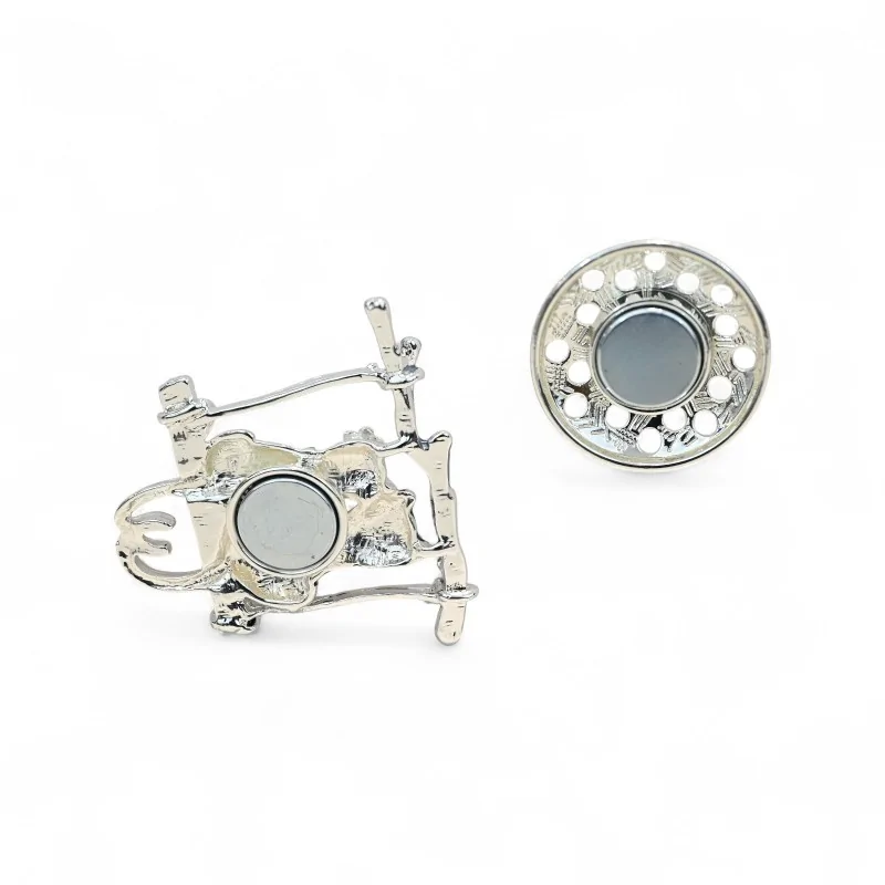 Questa spilla magnetica con coppia di gatti incarna la poesia dell'amore attraverso una scena toccante in cui due felini complici si ritrovano su un'altalena argentata. Il contrasto sorprendente tra il gatto nero e il gatto bianco simboleggia l'armonia degli opposti che si attraggono, creando un gioiello romantico di rara delicatezza. Ogni dettaglio è stato pensato per raccontare una storia d'amore: le code che si intrecciano naturalmente per formare un cuore, il fiocco nero che unisce i due personaggi e quel piccolo fiore dorato che aggiunge una nota preziosa all'insieme. La finitura argentata combina sottilmente aspetti opachi e lucidi, offrendo un gioco di luce che attira lo sguardo e magnifica questa spilla d'amore dalle dimensioni perfette di 5x5cm.