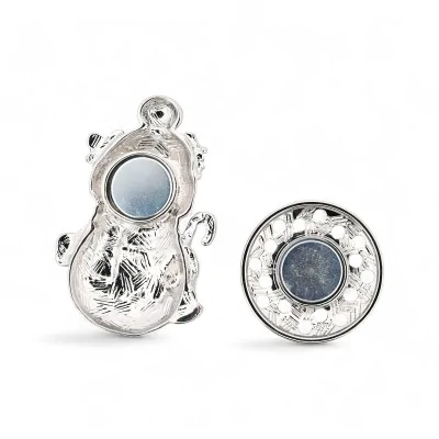 Ogni elemento di questa spilla natalizia magnetica racconta una storia: la piccola campana argentata che tintinna evoca i campanelli gioiosi, l'agrifoglio decorativo richiama le antiche tradizioni, e i tre bottoni di strass rossi allineati verticalmente aggiungono un tocco di raffinatezza scintillante. Questo pezzo si ispira ai classici pupazzi di neve, ai villaggi innevati e alla nostalgia delle feste di un tempo.