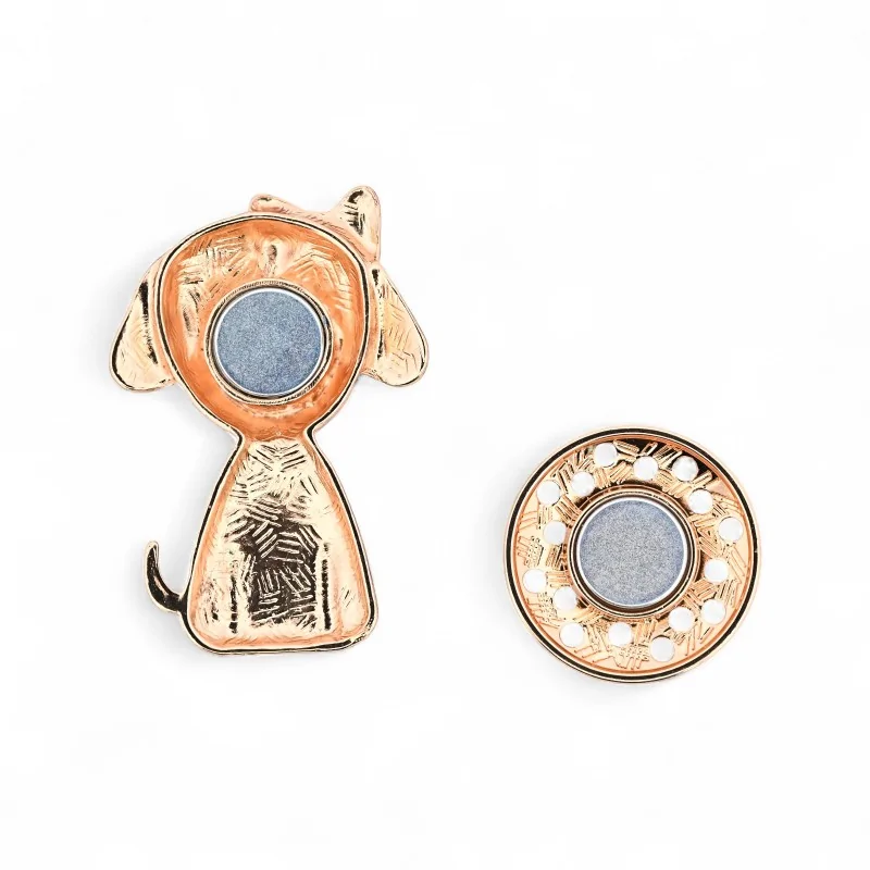 Questa spilla magnetica girly cattura tutta la tenerezza dello stile kawaii con il suo adorabile cucciolo dalle grandi orecchie cadenti. Il design sofisticato combina una finitura smaltata glitterata brillante con contorni dorati metallizzati per una resa premium eccezionale.