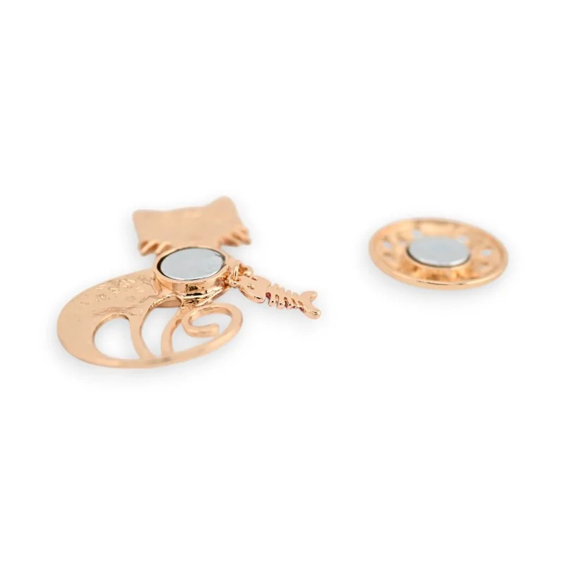 Il design felino di questa spilla evoca la grazia e l'eleganza naturale del gatto. L'aggiunta del ciondolo a forma di lisca di pesce apporta un tocco di umorismo e originalità che rende questo gioiello unico. I motivi floreali simboleggiano la delicatezza e la femminilità, creando un accessorio che racconta una storia pur rimanendo sofisticato.